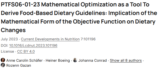 Concevoir un outil basé sur l’approche d’optimisation pour aider au développement du guide alimentaire allemand.